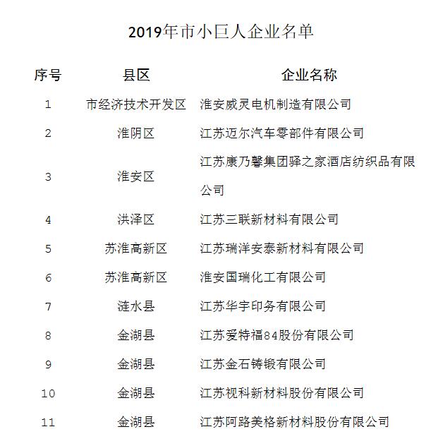 根據(jù)《關于組織開展2019年市小巨人企業(yè)申報推薦工作的通知》(淮工信中小〔2019〕159號),經(jīng)企業(yè)自愿申報、縣區(qū)工信部門審核推薦、專家評審,認定淮安威靈電機制造有限公司等11家企業(yè)為2019年市小巨人企業(yè)(名單附后),現(xiàn)予以公布。